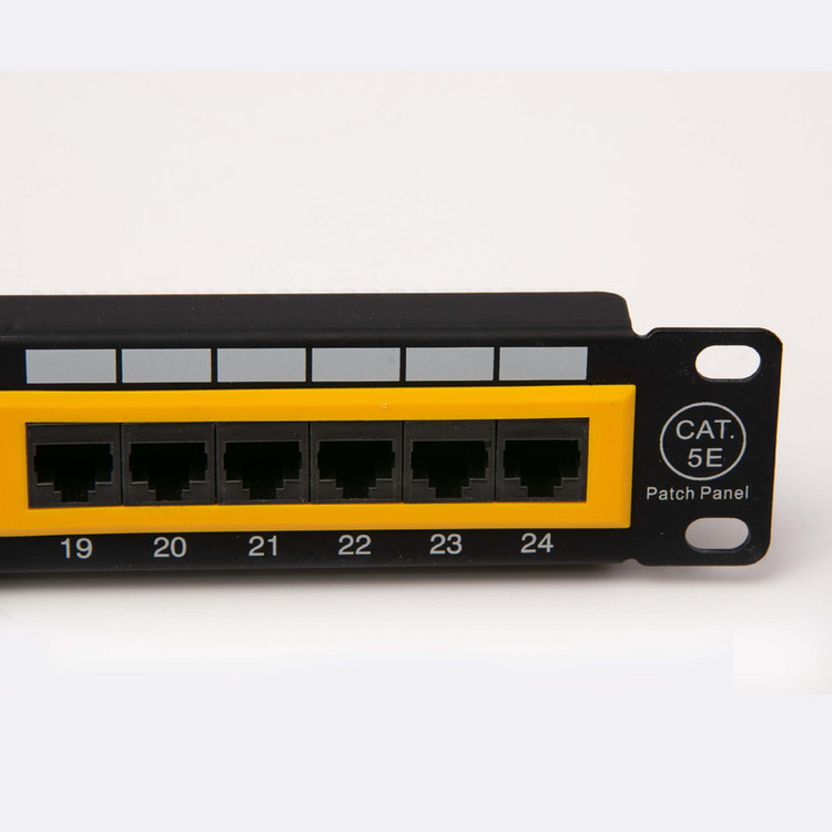 بطور استاندارد در کابل کشی ساخت یافته پچ پنلها درون رکها قرار می گیرند و همه کابلهای شبکه به این پچ پنلها متصل می شوند. یک سر تمام کابلهای شبکه درون پریز شبکه و سر دیگر آن به پچ پنل متصل می شود. این پچ پنل از نوع UTP کلاس CAT. 5E دارای 24 پورت می باشد. همچنین با بدنه ای از جنس فلز از کیفیت ساخت بالایی برخوردار است. روی بلوک های پچ پنل نحوه قرار گرفتن سیم های پچ پنل به صورت رنگ مخصوص آن کد بندی گردیده و بلوک ها با قاب های رنگی از یکدیگر تفکیک شده است.